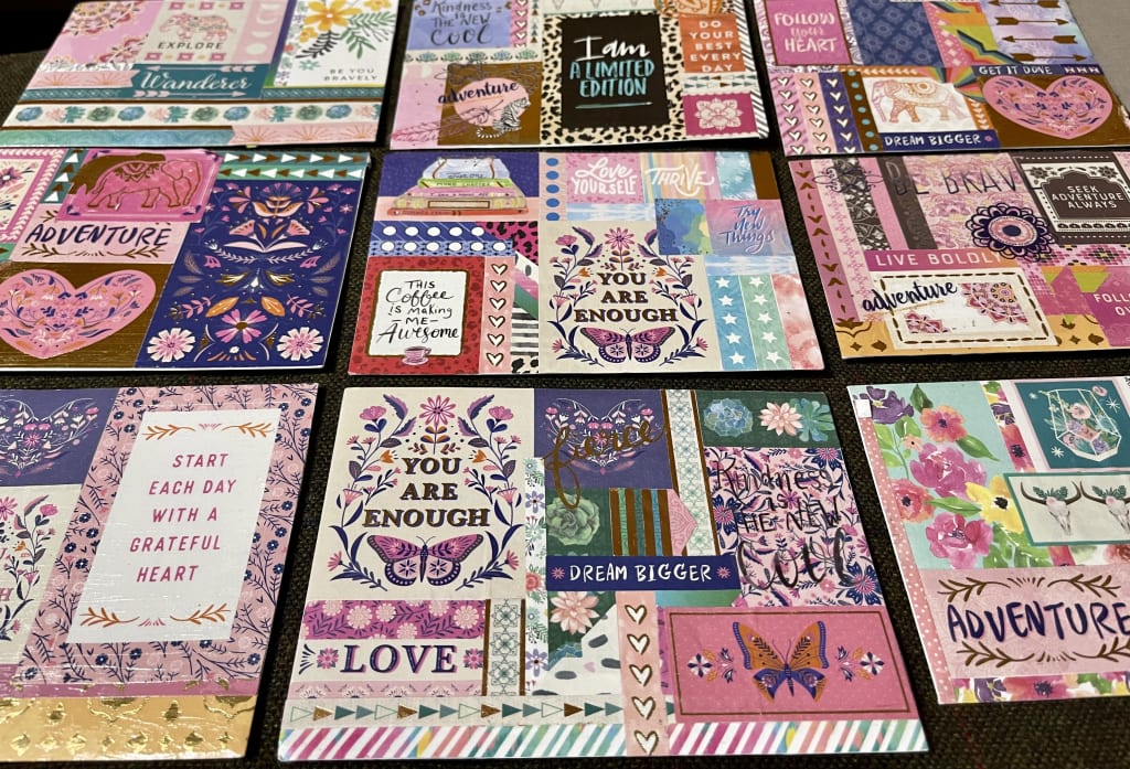 When it's my friends birthday's I always give them a card, but something more than just that, a card that shows them they matter to me and I create a unique card to show them they are special and they do mean something to me. When I started doing deliveries I was working on a card for a friend’s birthday one day and it clicked to me to start doing these cards for my customers to build a bond and make them feel safe. I start with a card and I give the envelope a special and unique look that is always different, I place stickers on the envelope and keep going till I cover the envelope and create a collage inspired look that always makes people smile. When I am done with that I cover the envelope in Mod Podge to give it a shimmery look that keeps the card looking fresh and special for each customer. It’s just a simple card with a special touch to remind people kindness still exists and small things like this can make all of the difference to someone going through tough times.