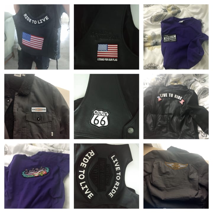 I didn't start making money with sewing until after I was diagnosed with Hodgkin's Lymphoma. Because small sewing projects aren't as physically taxing, I was able to do a little work here and there. Let me tell you--chemo brain is a real thing. Little, unpretentious tasks were about all I was capable of at the time. Fortunately, as a full time hairdresser before the diagnosis, I had already met my perfect support system of friends and family who took care of me. I ended up making a truckload of money from my kindhearted motorcyclist friends. They would bring their leather jackets, coats, shirts, etc. and I would sew Harley Davidson patches on for them. Since I had a sailrite sewing machine, it took little to no time and effort on my part, despite working with thick leathers.