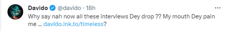 DAVIDO: Why say nah now all these interviews dey drop?? My mouth dey pain me...
