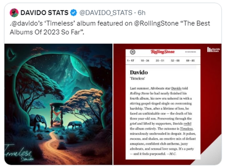 Today has definitely been an up and down rollercoaster for the singer: from being dragged to being celebrated again within 24 hours. Wow! Congratulations to Davido on Timeless making the Rolling Stones' list.