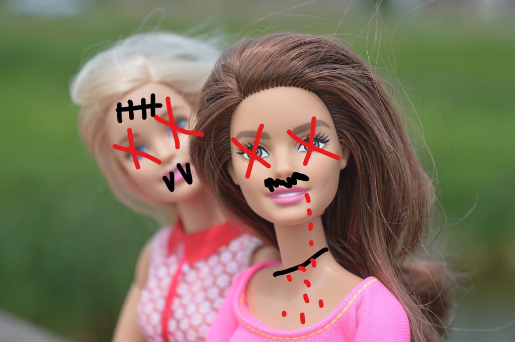 What Diamond and Pearl don’t know is that Helen has two Barbies propped up at home on the mantle that she found in the store (she paid for them, full price) and they are dressed as Diamond and Pearl in tacky, clashing colours with lots of skin showing. Helen likes to burn them with a lighter and then stick little dress pins into their faces. It makes her feel better.