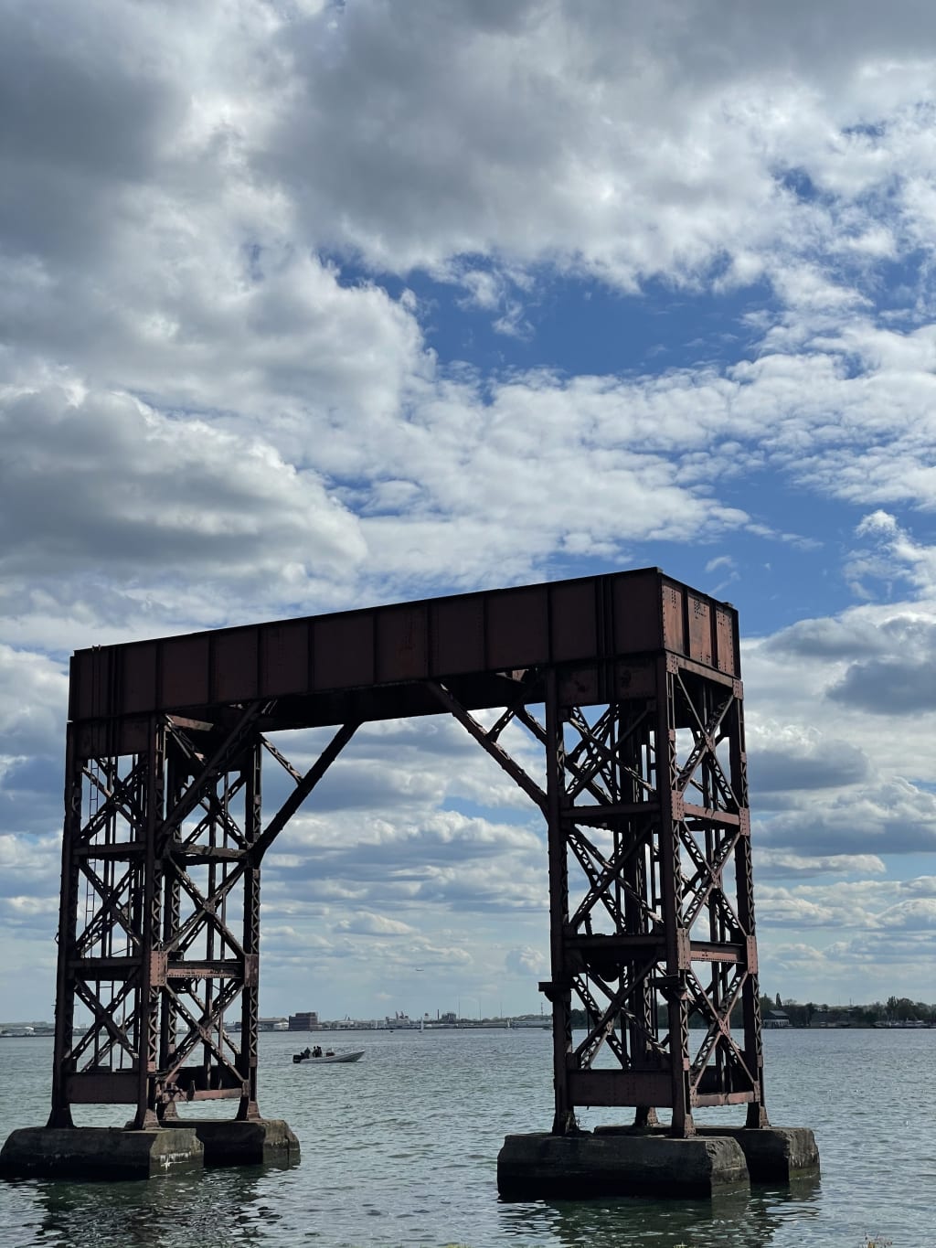 If you go down to the water you would see her meandering north against the current.