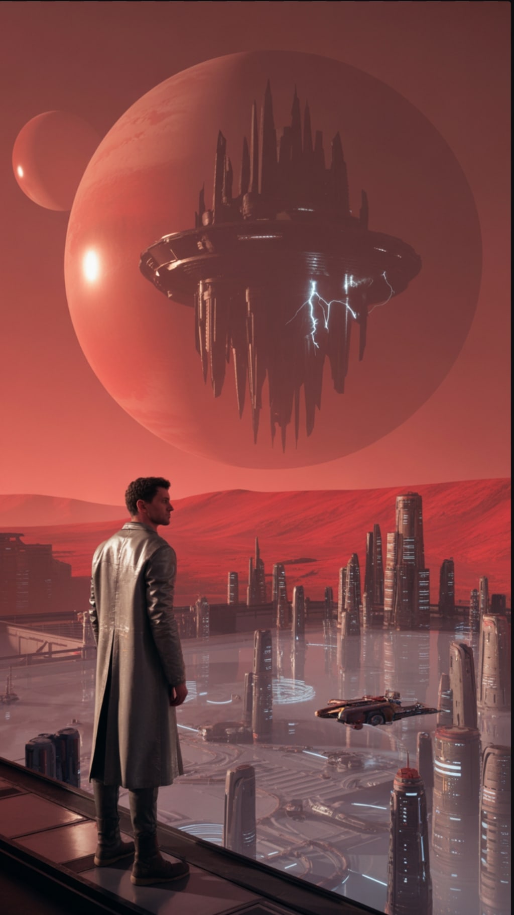 The red sun of Mars bled through the horizon like a dying ember, staining the metallic city of Gravehold in shades of gold and rust. Beneath its vast energy dome, the city pulsed with artificial life — floating trams glided through corridors of glass, and drones weaved between towers that reached for a sky no human could breathe.