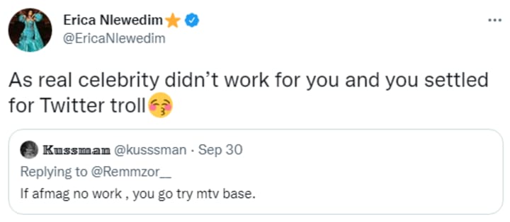 As you can imagine, her fans and peers alike began sharing, commenting and hailing Erica on the song. But not everybody in this life will be happy for you and of course, one person wasn't. A podcaster named Kussman took to Twitter to then say "If Afmag no work, you go try mtv base."