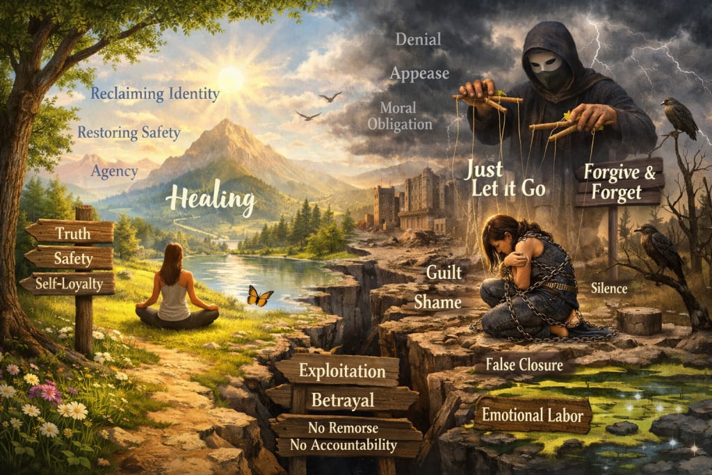 Healing does not require rewriting history to make it more palatable. It requires truth, safety, and self-loyalty. For many survivors, the most healing act is not forgiveness but the decision to stop abandoning themselves for the comfort of others.