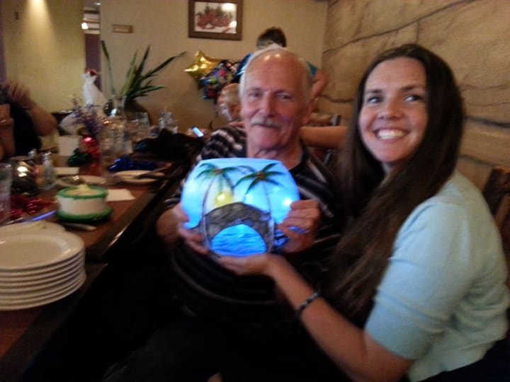 I sit bedside with my mom while my husband takes my dad out for some diversion. She chatters away happily while HGTV plays in the background and watches as I work my magic with paper and glass.