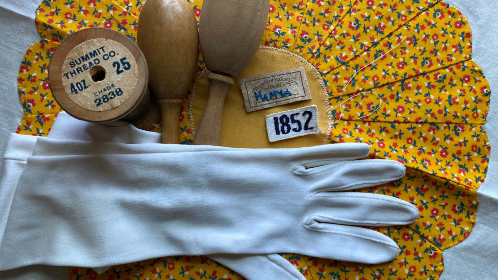 A glove? My eyes darted around the boxes before me, scanning bobbins and pins and thread and scissors and buttons (so many buttons), when a sliver of pristine white cloth caught my eye. Unfurled, it was a single white elbow-length glove with impossibly small fingers. My grandma, like my mom but not like me, is a petite woman.