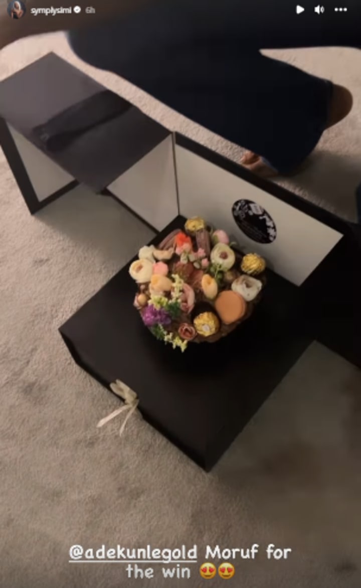 For Valentine's Day today, singer Simi was spoiled with flowers, cake, and jewelry from husband, fellow singer Adekunle Gold. The singer took to social media to show off the gifts that she received from her husband saying "Moruf for the win".