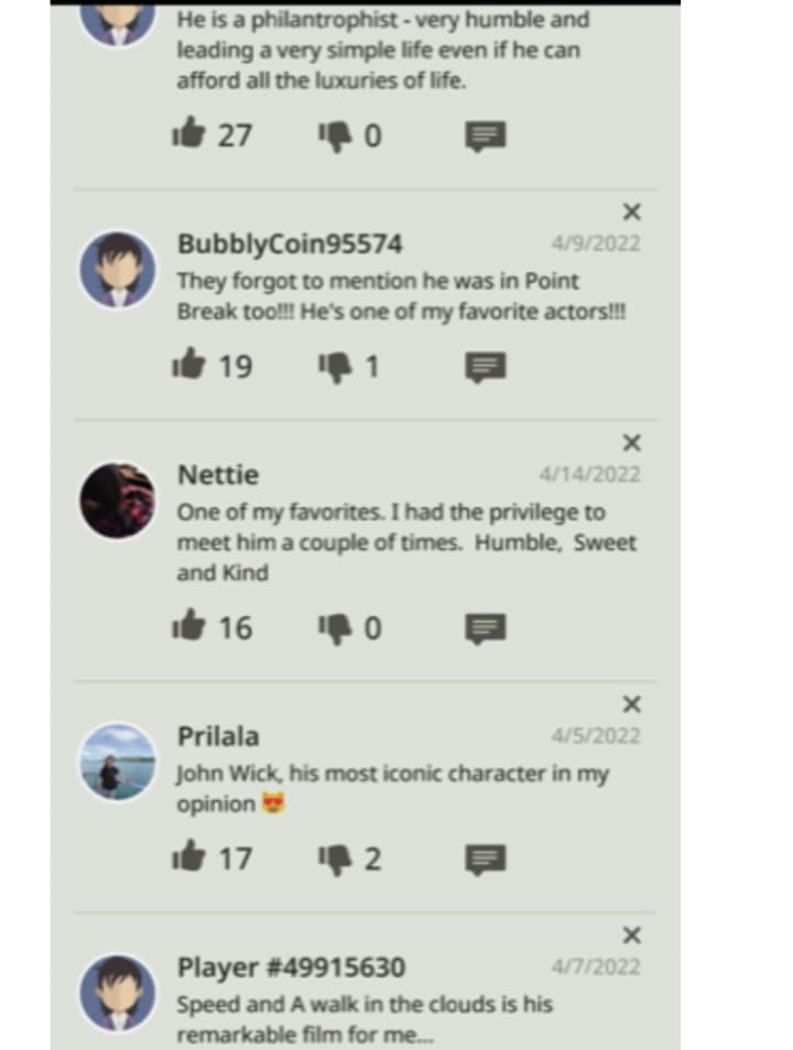 He is indeed one of the finest humans now existing. I also loved him as Constantine and all his romcom movies and of course Speed which truly made him a global star before Matrix.