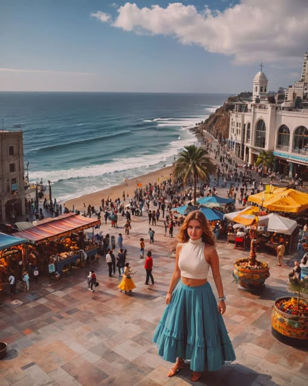 As you walk through the mall, the sound of waves crashing against the cliffs creates a calming backdrop, while the scents of delicious Peruvian cuisine fill the air. The vibrant colors of store displays and artisan crafts entice your senses, encouraging exploration and discovery.