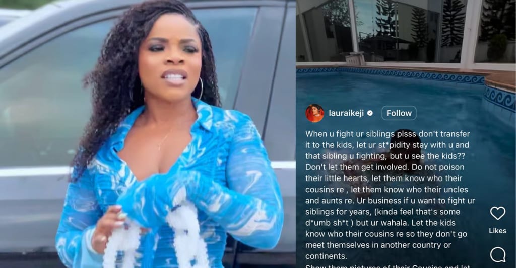 Taking to social media to lambast adult siblings who drag their children into personal fights, Laura Ikeji wrote about it saying: