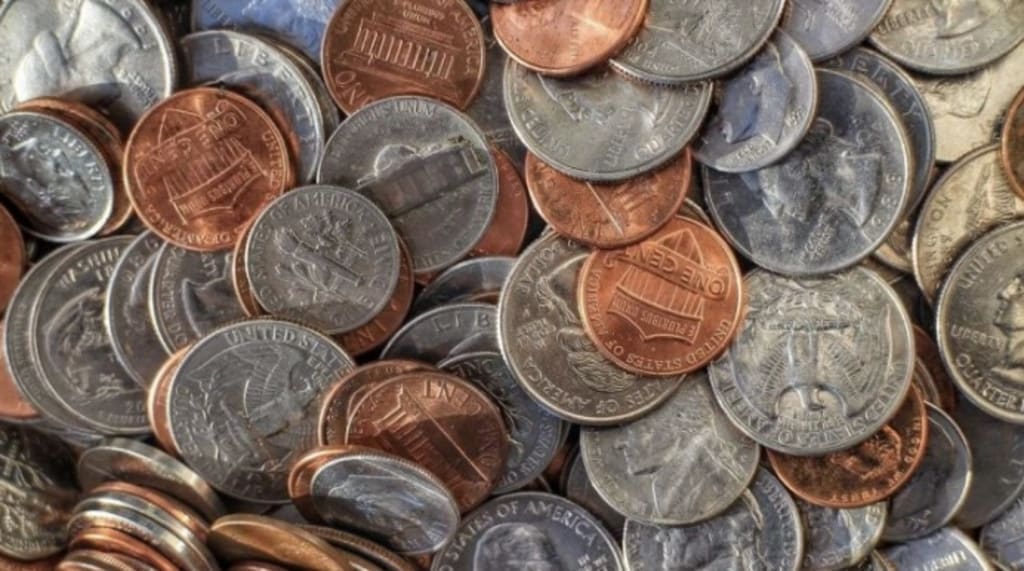 Out they come, stuffing their pale faces with pastry in one hand and swilling it down with a can of fizzy stuff in the other. And, down it tumbles, all the loose coins from their change, hitting the pavement and clattering away, rolling and spinning into the cracks and weeds. Like a waterfall of copper, with the occasional splash of silver added in the mix. I wait until they have wandered off, once again glued to their brightly coloured screens, and then Ted and I stroll over and collect it up. One coin here, three there, all making their way into my hand and from there into the pocket of my old fishing jacket.