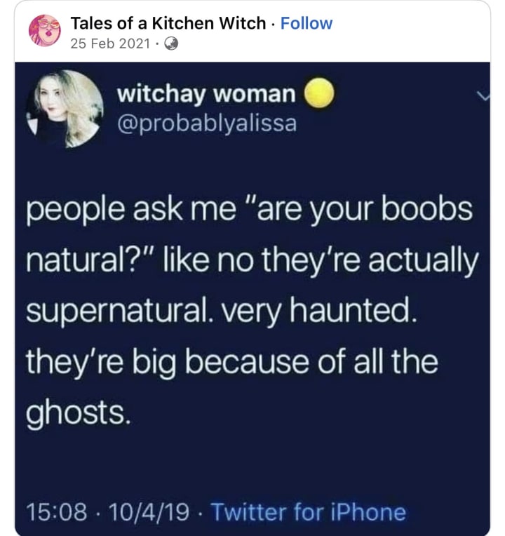 Haha some young woman informed me last night that she loved my corset and wished she had my breasts. I informed her they are big luscious breasts because I have fed babies and gotten fat. They are totally made up of chips and chocolate these days.