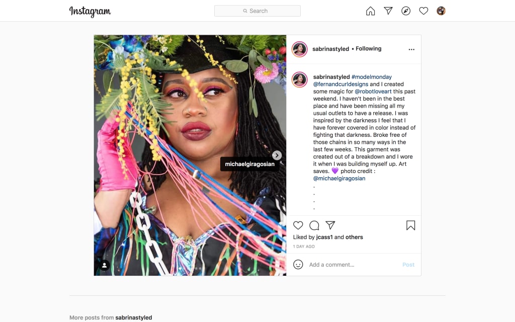 I followed Sabrina on Instagram and found out more than I had known through conversation. I found out she suffered from depression. This is comforting to me that she goes out of her way to make everyone feel included because after I suffered head trauma I’ve had to see a mental health professional regularly to deal with resulting head trauma related issues. Her sharing her story made me feel not so alone. Due to my continuous mental health treatment, sometimes I need time of extreme alone time.