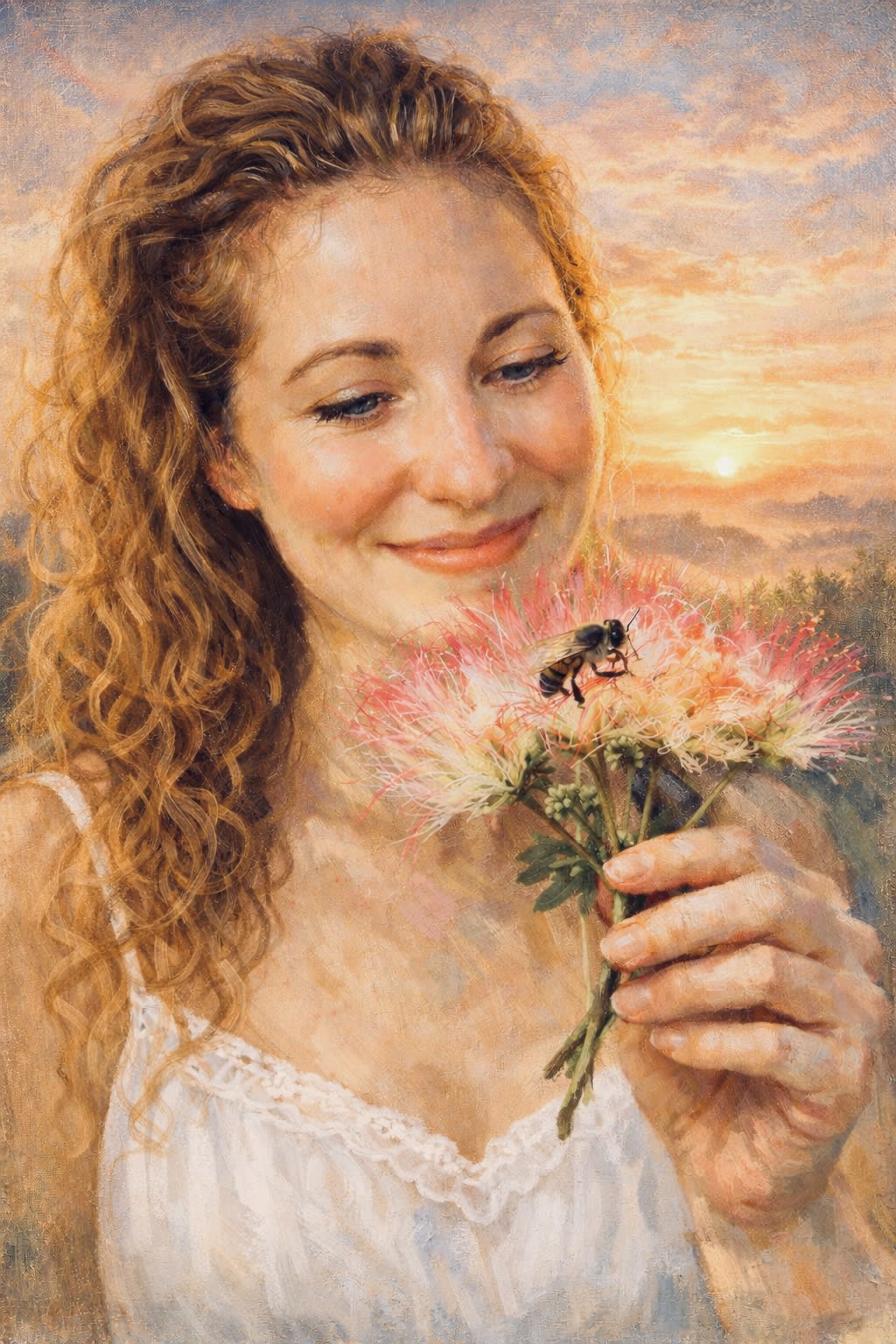 I felt the soft tickle on the back of my neck again. Those tiny hairs standing on end to signal the arrival of a lost but beloved spirit. I never knew when it was going to happen and despite its familiarity it always caught me off guard. I turned around, expectedly, like I was going to be greeting the visitor face to face, but I just laughed at myself because it never happens that way. It’s just a knowing that someone is there that hits me at the core of my being. Sometimes I wish I would spend more time developing my abilities to connect with the spirit world but the more I think about it the more I understand that this would require a lot more energy than I am willing to give. I continued my morning ritual of watering my potted plants outside before the heat of the summer day settled in like a heavy blanket. Gardening is another area in my life that could use some strong development but the fact that I could even keep the many potted trees alive meant that I was progressing. The feeling started to become more intense. What was at first a soft tickle was now full static electricity shooting down my back. I heard a faint ringing in my ears and before I could fully comprehend what was happening everything stopped. My body felt instantly calm, and I was surrounded by an unnatural silence. It’s almost as if I was suspended in another dimension. I looked around and now my mind was fully present in the moment. It had to be if I wanted to see what was calling for me. And that’s when I saw it. Right there on my favorite mimosa tree, covered with vibrant pink flowers, was a singular tiny honeybee.