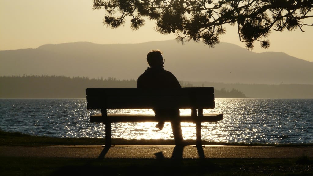 Henry stirred in his bed sheets, wallowing in a warm comfort. His eyes slowly gazed across the room, until they eventually fell upon his nightstand. A sticky note was placed on the shaft of a lamp, and a light, gentle scrawling told him to head into the bathroom. Henry scoffed and grinned at the note before turning his attention to the window. It looked like a beautiful day in the middle of the fall. Orange, red, and yellow trees gently swayed, and the water down by the lake glistened with the rising sun. The whole scene looked even more picturesque due to his failing vision, giving everything an oily and blended appearance. Henry immediately thought about how he often went down to that lake to go swimming or skip rocks with his old high school friends.