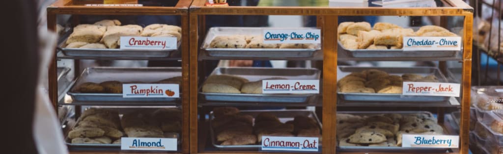 He turned on the lights, illuminating the family photos and the prominent American flag that dominated the back wall of the shop. He took a final glance over the sections of his cases: bread, cakes, donuts, pies. Pinks, yellows, golden browns, dark chocolate cupcakes with bright red raspberries on top. There is a distinct and unique beauty to baking, which makes it quite a thrill once you have mastered a specific technique and can produce such beauty yourself.