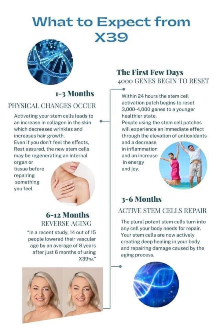 You may be asking yourself, "What is X.39?" X.39 is a groundbreaking product by Lifewave that uses advanced phototherapy technology to promote overall wellness and vitality. Each X.39 patch contains crystalline structures that, when applied to the skin, reflect specific wavelengths of light back into the body. This non-invasive method of light stimulation triggers the activation of our body's stem cells, leading to a range of potential health benefits, including enhanced wound recovery, improved energy levels, and more efficient sleep patterns. Essentially, X.39 is designed to harness the body's own regenerative power to support a healthier and more active lifestyle.