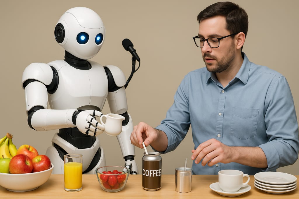 In one instance, the robot gave a person milk and a stir stick as soon as it saw them reaching for a can of prepared coffee. In another scenario, the robot picked up on a conversation between two people talking about coffee, and offered them a can of coffee and creamer.