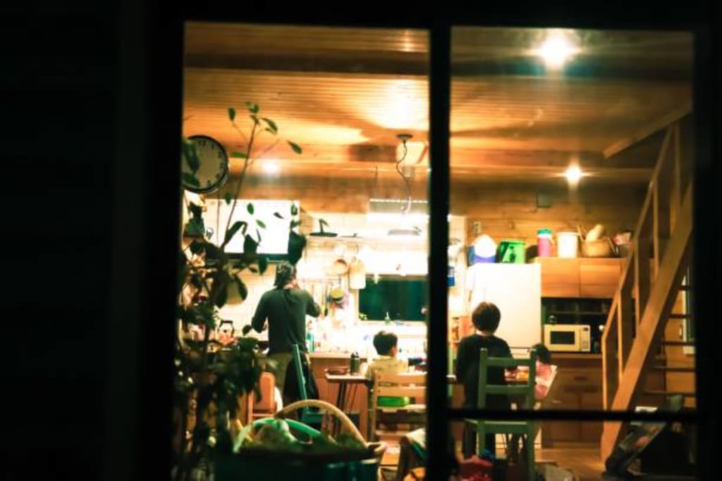 My feet were frozen again, cemented into the ground. There was a clock on my old bedside, its red lines said 8:01 PM. I didn’t want this to happen again. I did my best to wake myself up because I knew it couldn't be real. I saw him standing there on the sidewalk, just watching them. I didn’t know why he was watching them this time. I felt like maybe I should trust him this time, like it was different. I thought maybe he lost his own family, or maybe the family in the window was his family, but they’d expelled him from their home or something like that. It wasn’t going to be like before. I looked back at the clock and it was 8:11, the streetlights were at their brightest, giving the street the eeriest sentiment. And somehow, this time, even from across the street, I could see every detail of his body, the way his arms hung just past the middle of his thigh. The way his shoulders hunched, as if gravity controlled their every movement. Something about him screamed sadness, so I stopped panicking. He just seemed sad. The family was happy, and he just stood there watching them, while I stood there and watched him.