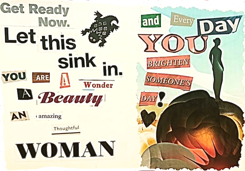 Our work schedules were nearly completely opposite and I didn't see her that often, but when she was around I'd see her sitting on the floor next to her air mattress, carefully cutting up magazines with a serene smile on her face.