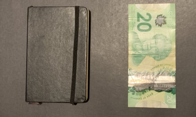 I had that dream again. You know the one. In the dream, I’m standing in the middle of a large, empty room. There’s nothing in it but a black lacquer table that’s lit from above, as though by a spotlight. On the table are two things: a small black notebook and a stack of thousand-dollar bills. Twenty of them. Every time. I know because I’ve counted. Over and over.
