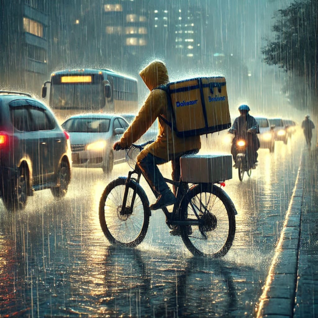 Rain also creates physical challenges. Constant exposure to water can lead to discomfort and unease. The body struggles with the humidity, wet shoes, and persistent cold. Despite these hardships, delivery workers cannot afford to take breaks, as deliveries must continue and deadlines must be met. Fatigue and discomfort become constant companions on a rainy day, but delivery workers must remain focused on their jobs.