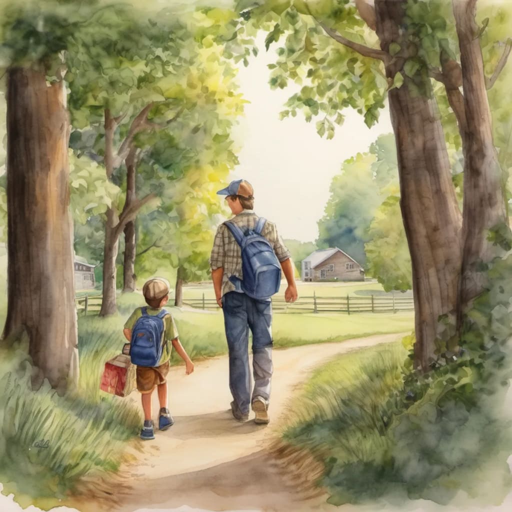 Once upon a time, in a small town in America, there lived a loving father named Michael. Michael had a son named Ethan, who was eight years old. Michael loved Ethan with all his heart and wanted nothing but the best for him. He would often spend quality time with Ethan, making unforgettable memories. One beautiful summer day, Michael and Ethan decided to go on an adventure in their cozy little town. They packed a picnic basket filled with their favorite snacks and set off to explore the nearby forest. As they walked through the tall trees and listened to the sweet chirping of birds, they stumbled upon an old, mysterious map lying on the ground.