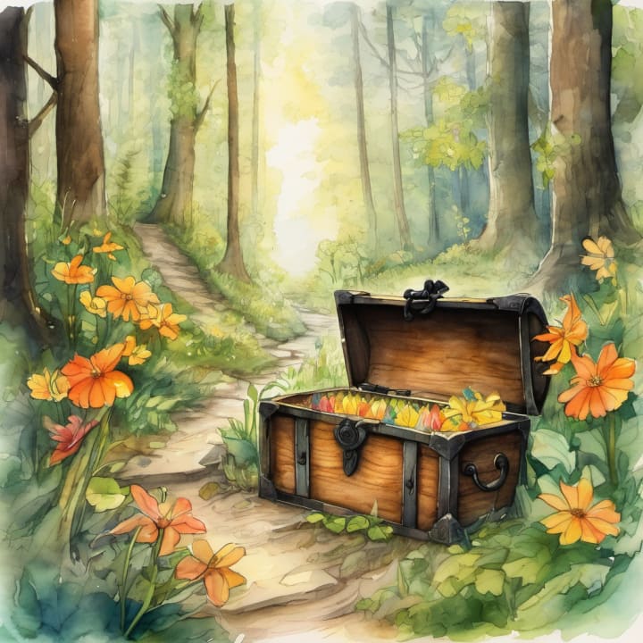 Excitedly, they picked it up and saw that it led to an enchanted chest hidden deep within the forest. Feeling curious, Michael and Ethan decided to follow the map to see what they would find. The forest became even more dense as they walked further. It felt like they were stepping into a magical world. After a while, they reached a spot marked by an X on the map. Looking around, they saw a beautiful, sparkling chest nestled among the colorful flowers. However, there was a small problem – the chest was locked and they didn't have a key!