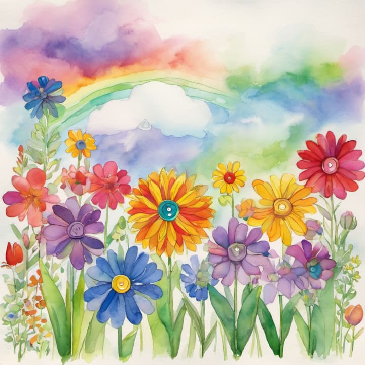 As they thought about what the correct combination could be, they noticed a pattern in the surroundings. They saw that there were ten different flowers nearby, each in a different color. With excitement, Michael and Ethan realized that the number on each button on the chest corresponded to the position of a flower in the rainbow. Ethan quickly exclaimed, "Dad, let’s look at the colors of the flowers and try pressing the buttons according to their positions in the rainbow!"