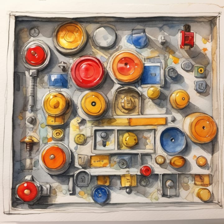 They began pressing buttons one by one, starting with the red button, then the orange, and so on. When the last button was pressed, they heard a satisfying click, and the chest popped open, revealing a shiny gold key inside. Ethan’s eyes sparkled with joy and he shouted, "We did it, Dad! We solved the puzzle!"