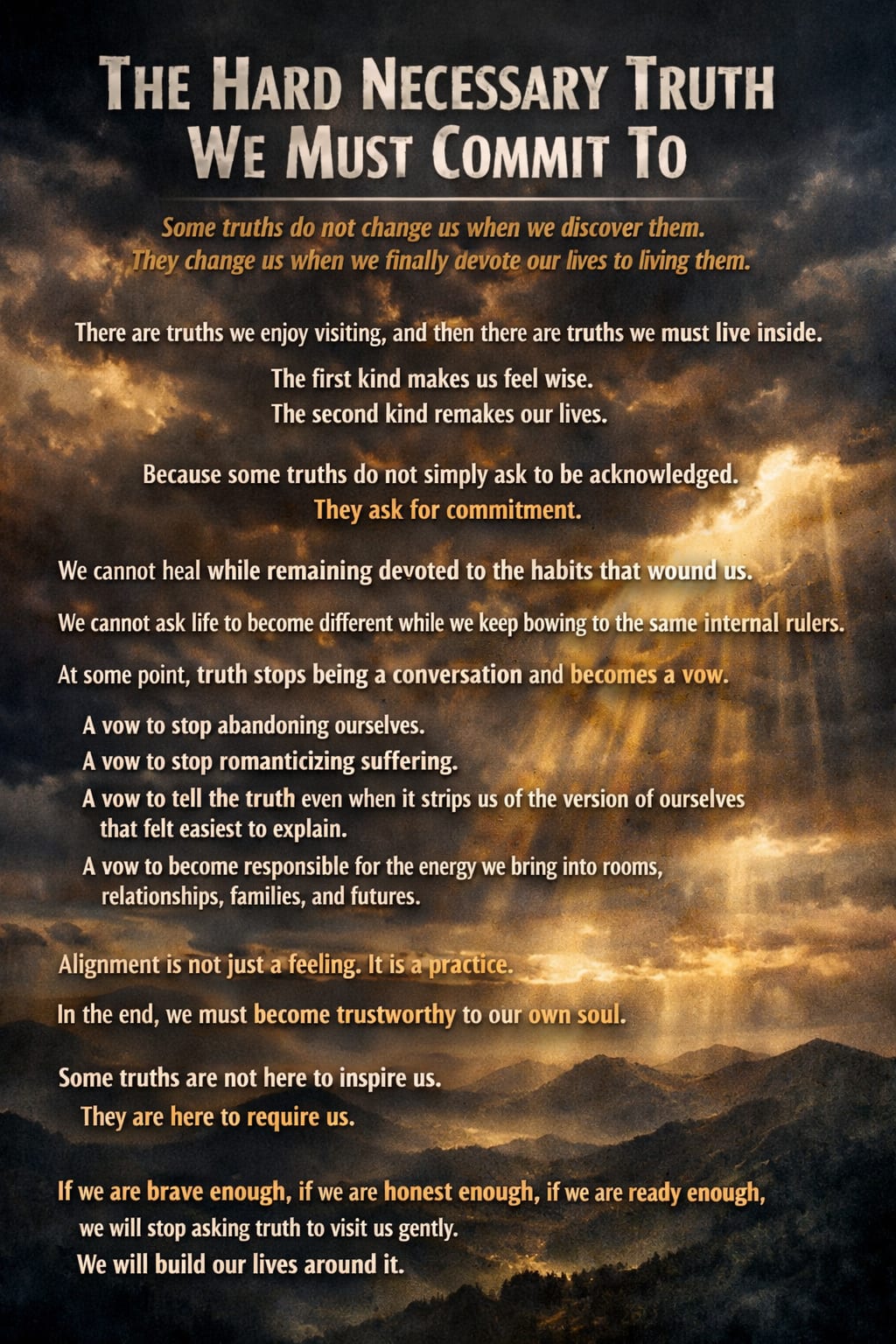 Some truths comfort us. Others confront us. This piece is for the truths that ask for more than recognition—for the ones that require embodiment, discipline, and an honest reordering of the self.