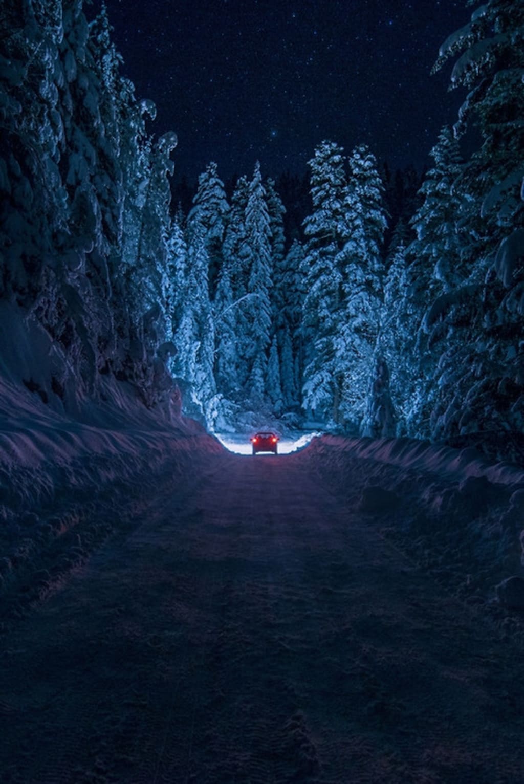 And just like that, it was calm again. Charlie’s eyes darted around wildly. He was still moving, his car cruising gently down the now-quiet highway. His heart had stopped pounding and he relaxed his grip. He was outside of town now, on the lick of black highway that stretched through the forest. He sighed, relieved, and was about to ease himself into the drive when something ahead caught his attention. It was a man, standing on the side of the road. Charlie glanced at the radio: 5:03 am.