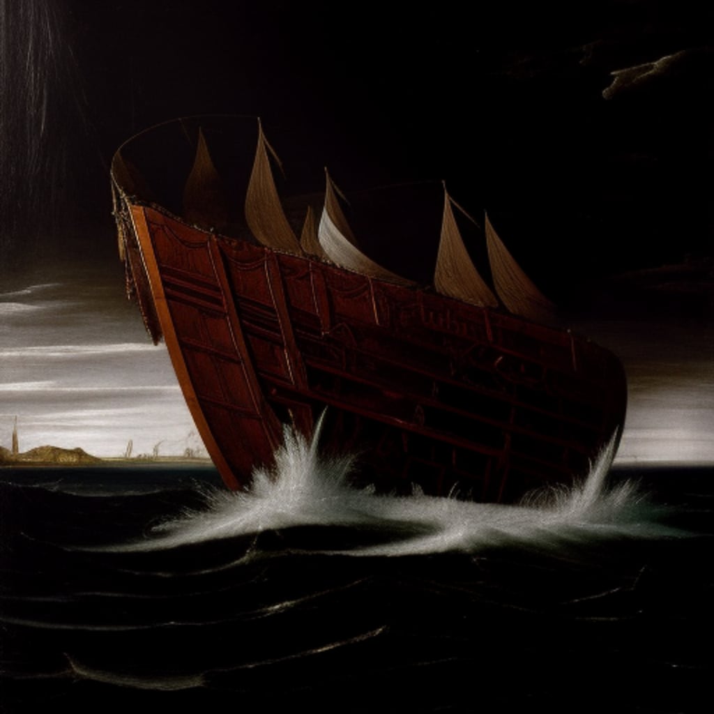 As he walked to the restroom in his boxers, a huge wave slammed into the ship, causing it to capsize. Harrison was thrown out of the washroom and tumbled around the ship as water poured into its halls and cabins. The vessel began sinking faster and faster, down into the sea. Harrison groped around, trying to find safety, but all the doors around him were locked from the inside. This was a practice to protect the ship's passengers and content since pirates were known to raid boats in the region.