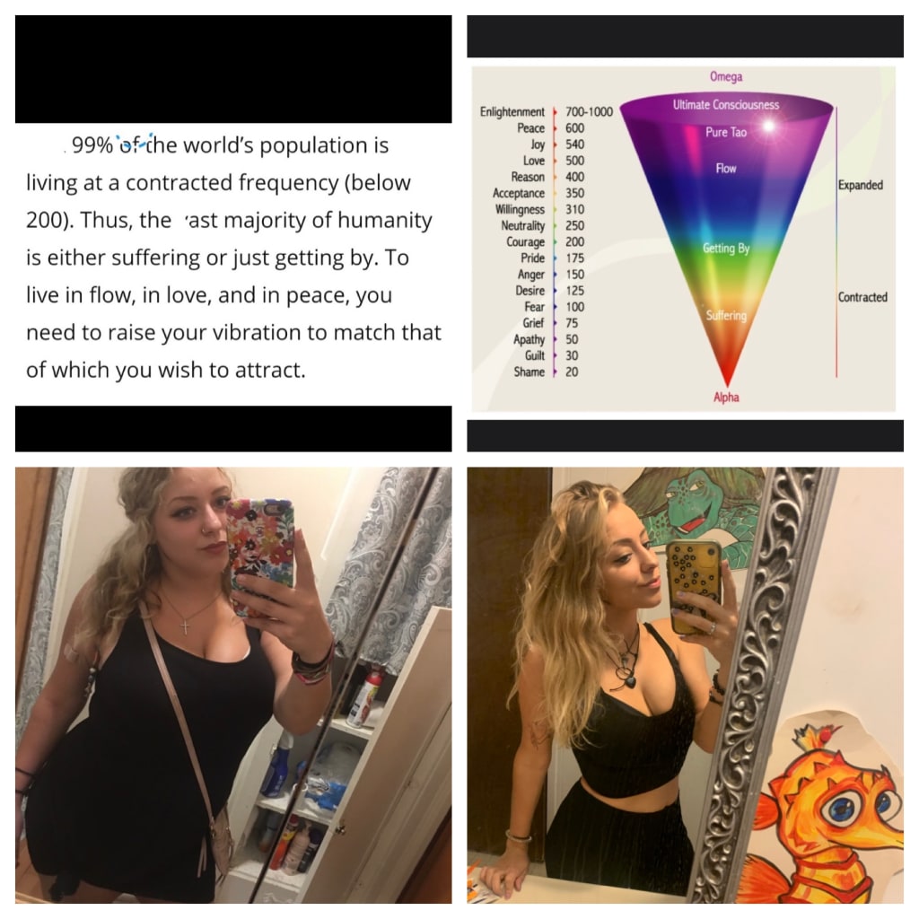 On a spectrum starting with 'Shame' and 'Guilt' being at low vibrations between 20 and 30 to 'Peace' and 'Enlightenment' being at high vibrations of 600-1000. Most of the people in the world, according to this infographic, vibrate at about 200 or below. We all can help one another to raise our vibration, by giving each other experience of joy for example, and by encouraging to pass it forward. Interestingly enough, I realize now when I am around the 200 vibration range that I can practice 'Courage' to get myself to the brighter view of a perspective, or out of a bad situation.