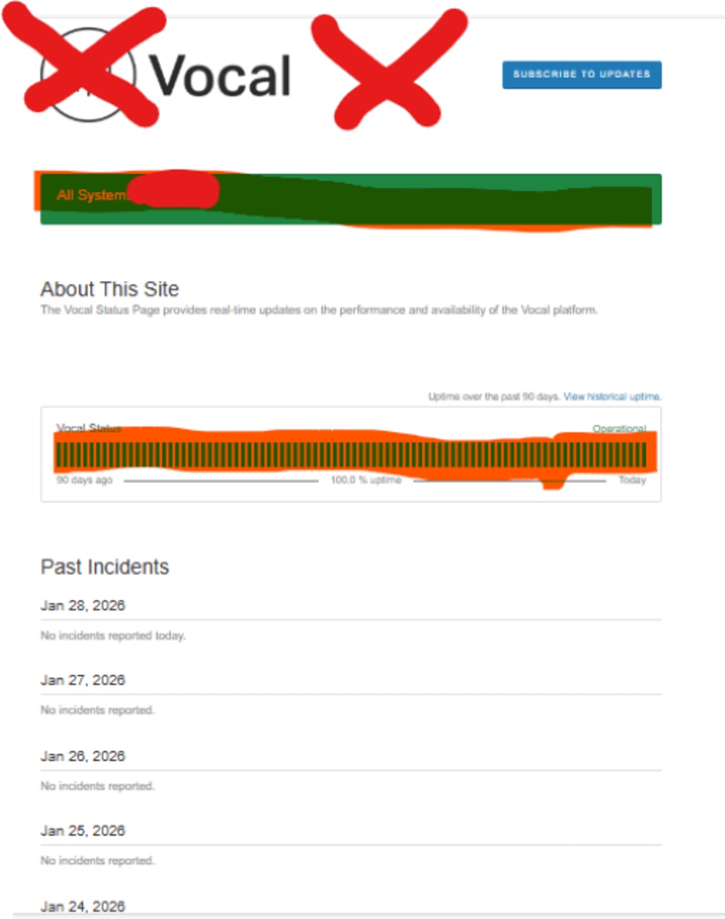 Vocal's status page tells us there have been no issues since god knows when, but I have had outstanding unresolved issues since the 23rd of November.