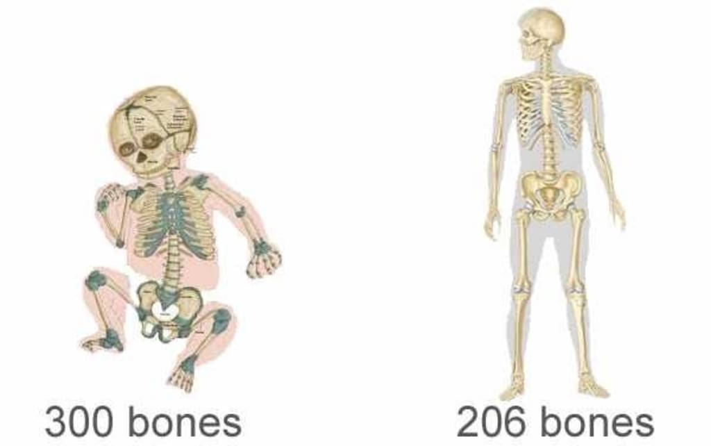 The fact that Throughout their lifespan, humans go from having 300 bones to 206 bones.