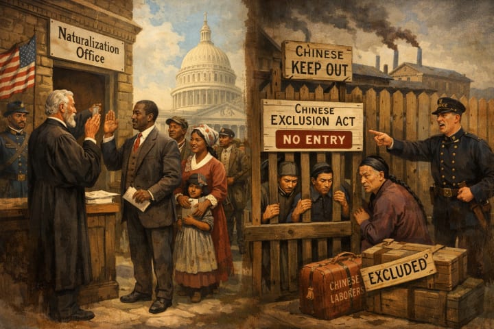 Naturalization Act of 1870 extended citizenship eligibility to people of African descent but Asians remained excluded, reinforcing a racial hierarchy of belonging; a post-Civil War legislation that allowed foreign-born individuals of African descent to naturalize, broadening rights beyond the 14th Amendment's birthright citizenship, while maintaining racial exclusions for others, specifically Asian immigrants.