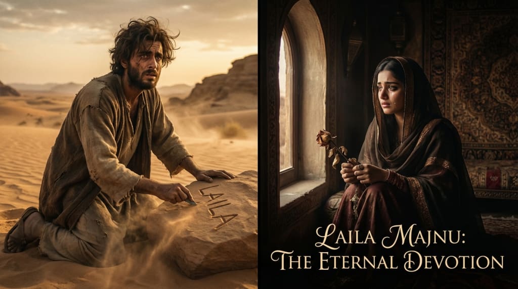 People called him Majnu, the madman. But was he truly mad? Or was he simply living a love so pure that the "normal" world couldn't understand it? He didn't care about food, shelter, or status. His only purpose, his only thought, was Laila. His body was in the desert, but his soul was always with her.