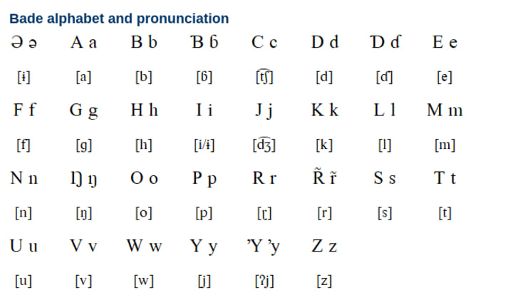 Spoken by approximately 350,000 people, Bade is a West Chadic language native to Nigeria. Bade is taught in schools and and used in literature; however, because it is rapidly being replaced by the dominant language of Hausa, Bade is greatly endangered and at risk of extinction.