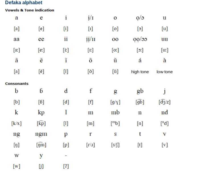 The Defaka language is spoken in the Opobo–Nkoro government area of Rivers State, Nigeria. Due to the small population of Defaka people in the area, as well as the domination of local languages such as Nkoroo, Defaka is in danger of extinction.