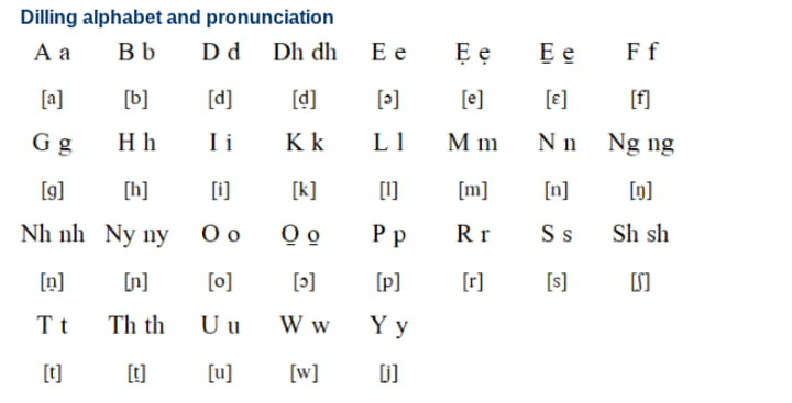 Dilling is a moribund language spoken in the Northwestern Nuba Mountains of Sudan. All speakers of Dilling are from older generations. All also speak Sudanese Arabic.