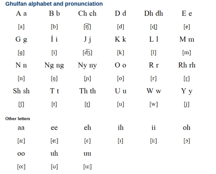 Ethnologue reports that no monolingual speakers of Ghulfan are left, and younger generations mostly use Sudanese Arabic. Ghulfan is spoken in the central Nuba Mountains of Sudan, where the Ghulfan people live in villages.