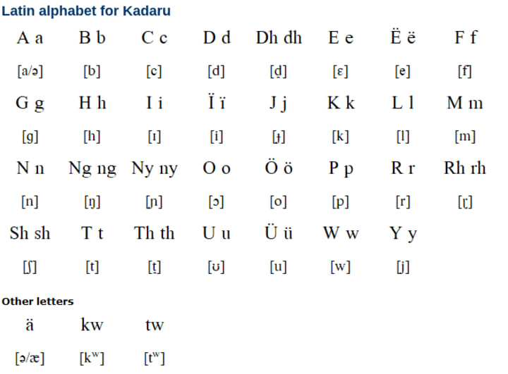A close relative of Ghulfan, Kadaru is a Hill Nubian language of the Nuba Mountains in Sudan. It consists of about six dialects, but all are threatened due to the prominence of Arabic in the area.