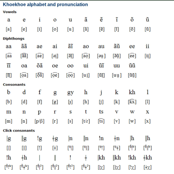 Despite its national language status in Namibia, it is estimated that only 167,000 Khoekhoe speakers are left in all of Africa. Spoken primarily in Namibia, Botswana, and South Africa, Khoekhoe uses click consonants. It is native to the Orange River and Namaqualand regions of South Africa. Khoekhoe is spoken by three Indigenous groups: the Nama, the Haiǁomkhoen, and the Damara peoples.