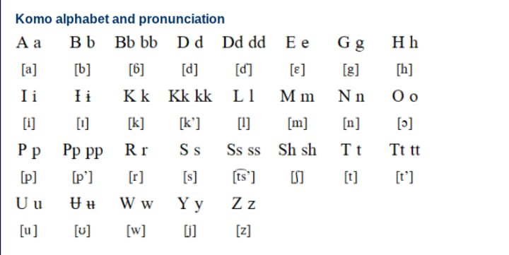 The Kwama peoples reside in the Benishangul-Gumuz Region of Ethiopia, where they hunt, cultivate sorghum, and gather honey. Komo language is endangered because of its proximity to other languages such as Oromo and Kwama. Such proximity also means that most speakers of Komo are multilingual.