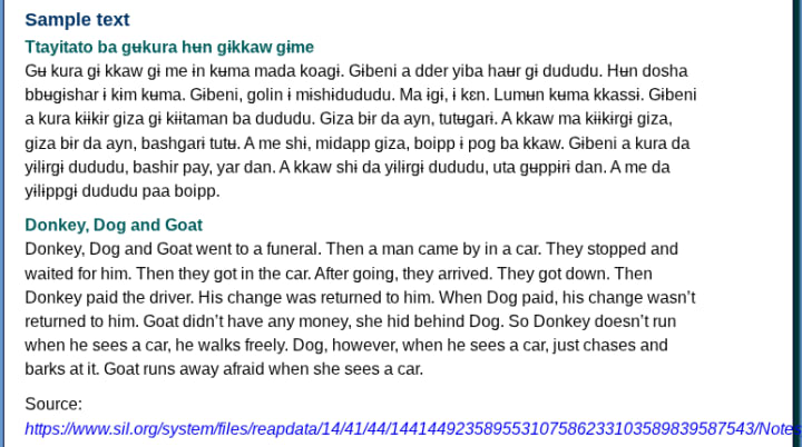 Goemai is a Chadic language of Nigeria, spoken in Plateau State in the country's centre. Despite the large number of Goemai speakers in the region, the language is threatened by the dominance of Hausa.