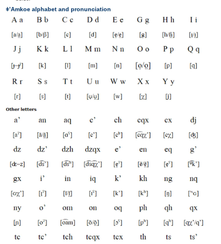 #'Amkoe is a moribund language, with most of its speakers born before 1960. Among younger people, #'Amkoe is generally avoided in favour of Glui, Kgalagadi, or Tswana. It is spoken in three areas of Botswana, each with their own dialect: