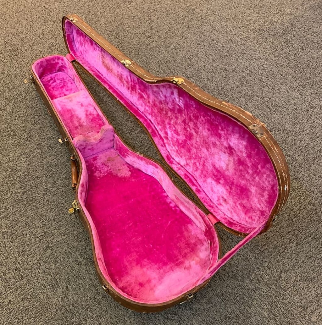 A near mint cherry sunburst 1959 Gibson Les Paul Standard, worth $450,000.00. No case found in a thrift shop! The next day I played it for about six hours, slept with it for two weeks, and then sold it.