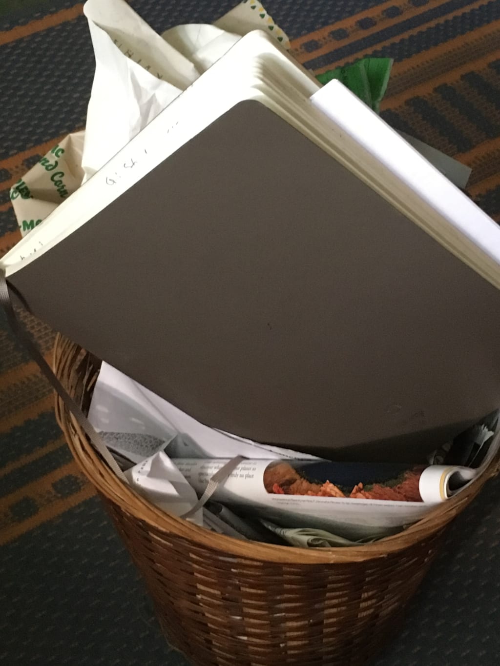 Mary jumped up, abruptly, before she could change her mind, and carried the stack of notebooks to the trashcan. Shoved them in, brutally: she could almost hear the plotlines yelp. Immediately she felt light, as though she had been carrying those characters on her back for 100 miles. She smiled at the woman in the blue headscarf, relieved.